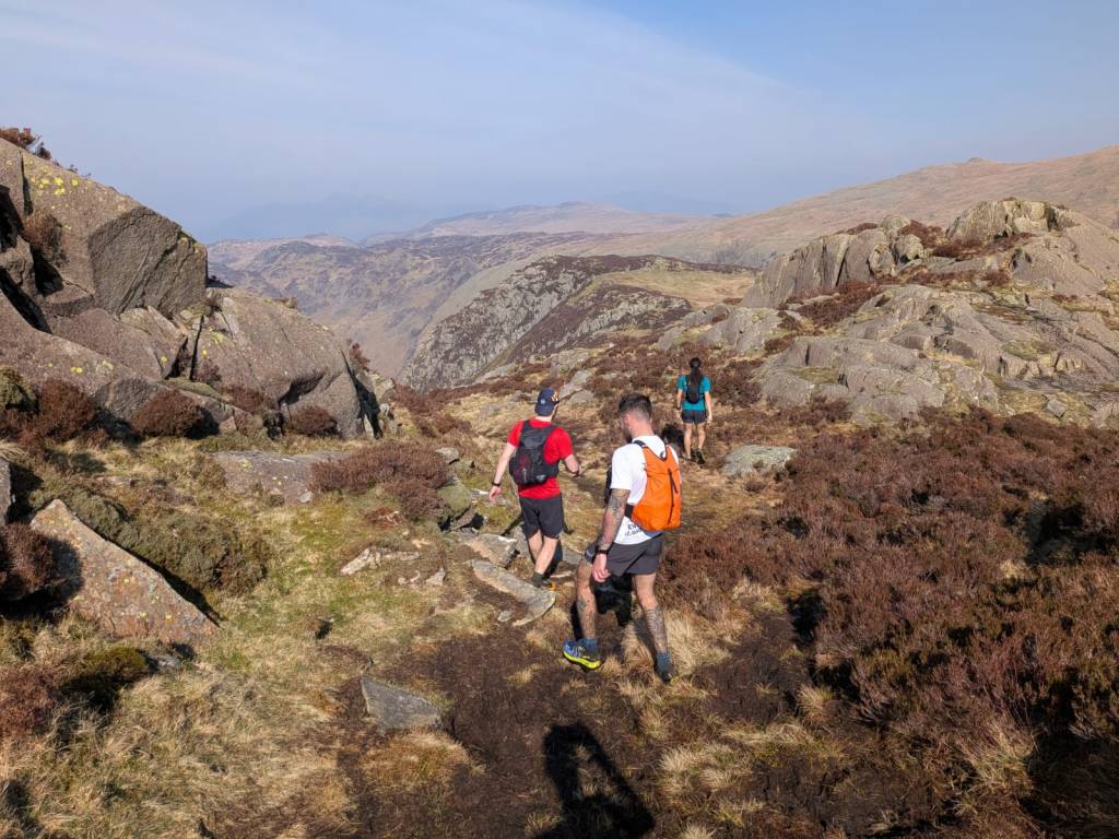 We headed to the langdales, tackling Blea Rigg , Pavey Ark and all the other fells in that area. Tackling a few Wainwrights in quick succession. We then headed to High raise which would take us to the highest point of the day at 762 metres. A quick bite to eat and we headed off. 10 mile completed. The highest point of the day did not mean the hard bit was out the way , far from it. Sergeant man and Tarn Crag next. The descent off Tarn crag was excellent and was some of the best running for the day to be honest. We got to the bottom of Helm Crag where we ascended via the south west side. This was one of the hardest climbs of the day I felt. Getting blasted by the sun also. 13M completed.