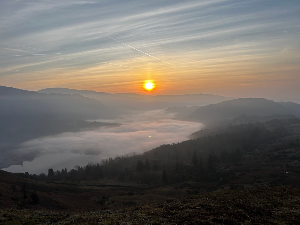 Myself , Tom Dransfield and Callum Norris completed all the route , with Mylo Jewell joining us at Steel Fell around 16 mile in ,with 25 mile to go. It was a fantastic morning with a lovely cloud inversion in Grasmere when we summited the first two of the day, Loughrigg Fell and Silver Howe.